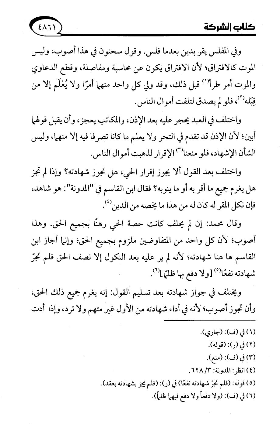 (¬4) انظر: المدونة: 3/ 628.