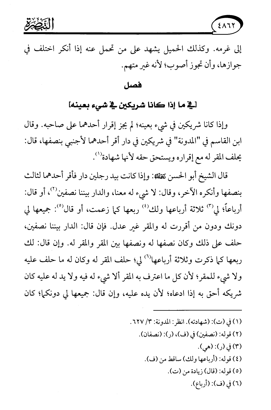 فصل [في ما إذا كانا شريكين في شيء بعينه]