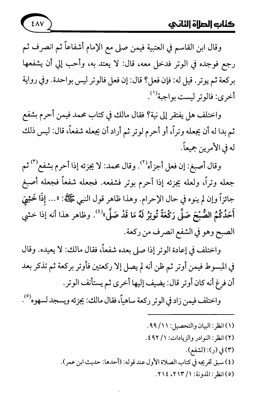 (¬2) انظر: النوادر والزيادات: 1/ 492.