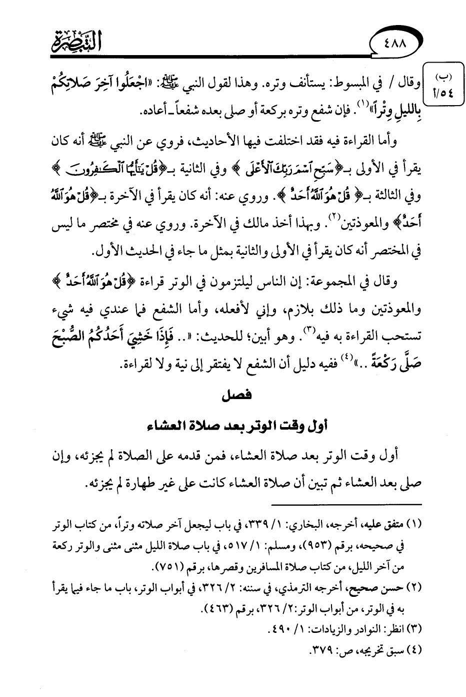 (¬3) انظر: النوادر والزيادات: 1/ 490.