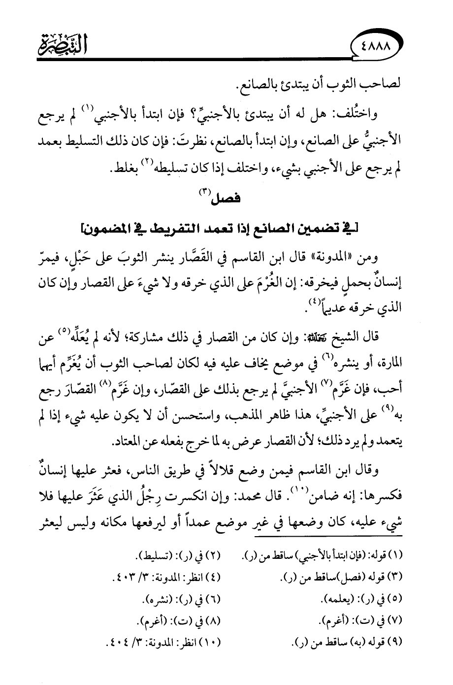 (¬10) انظر: المدونة: 3/ 404.