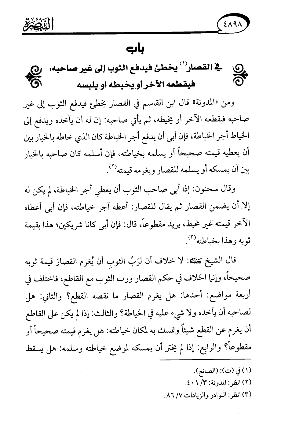 (¬3) انظر: النوادر والزيادات 7/ 86.