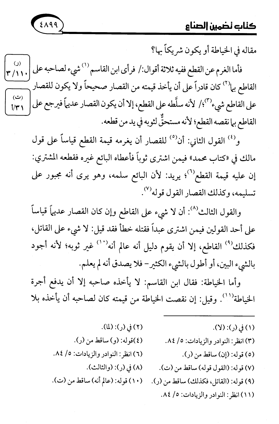 (¬3) انظر: النوادر والزيادات: 5/ 84.