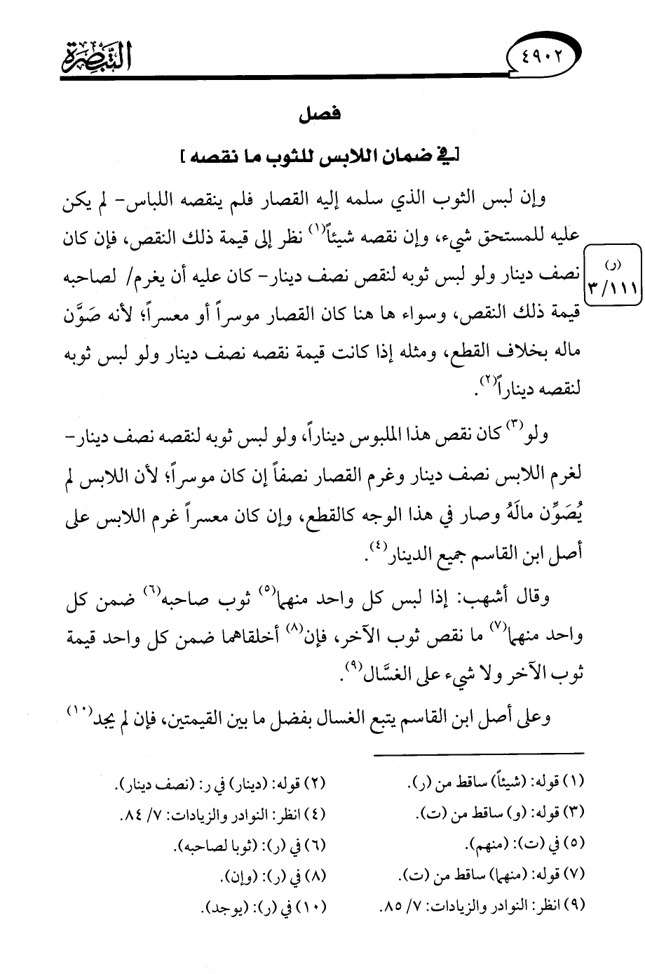 (¬9) انظر: النوادر والزيادات: 7/ 85.