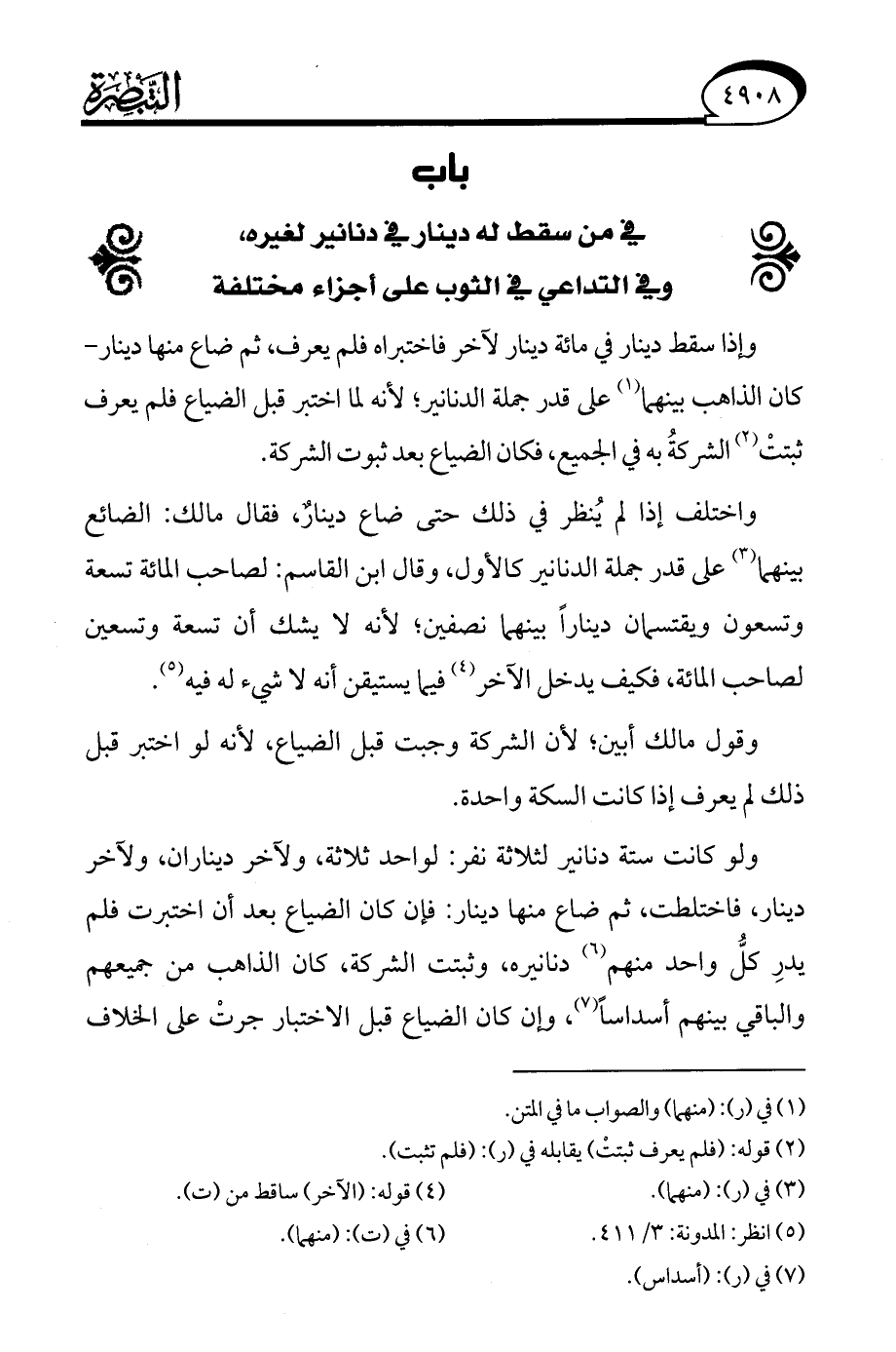 (¬5) انظر: المدونة: 3/ 411.