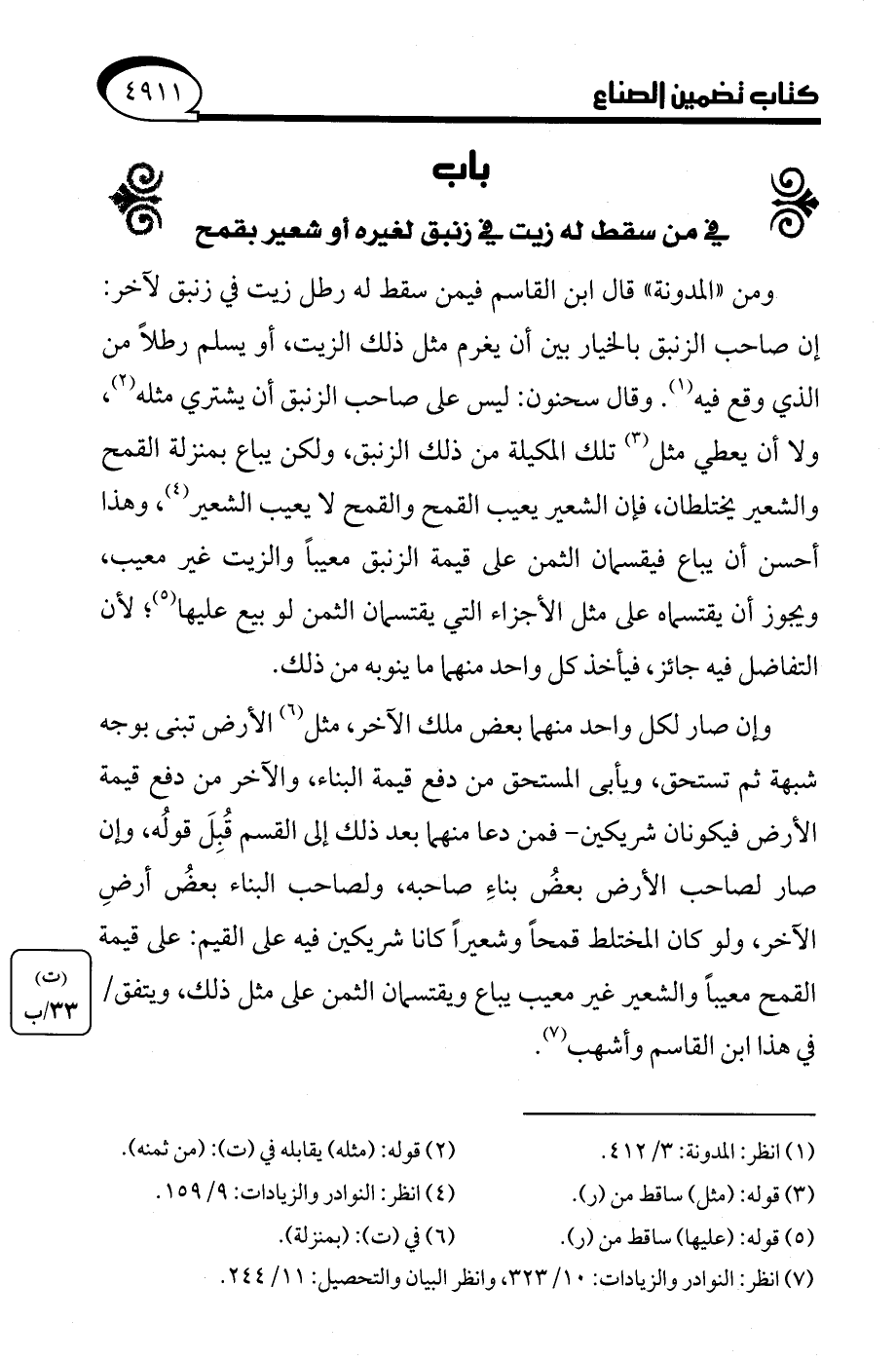 (¬7) انظر: النوادر والزيادات: 10/ 323، وانظر البيان والتحصيل: 11/ 244.