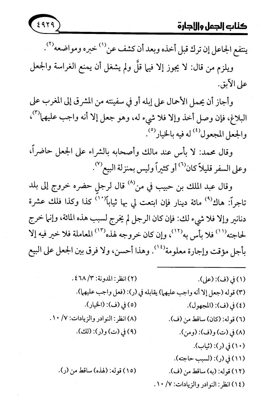 (¬14) انظر: النوادر والزيادات: 7/ 10.