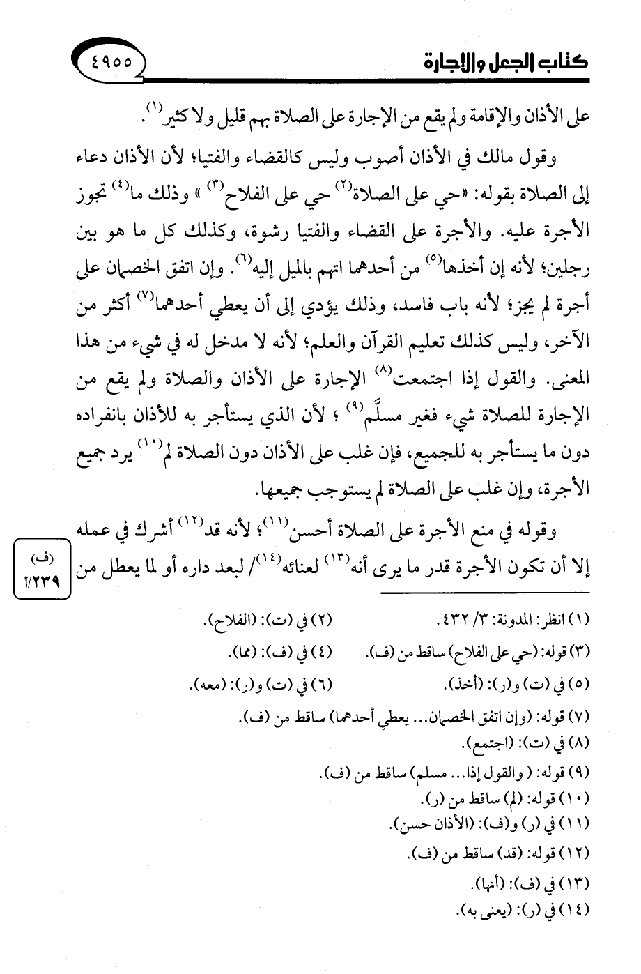 وقوله في منع الأجرة على الصلاة أحسن (¬11)؛ لأنه قد (¬12) أشرك في عمله إلا أن تكون الأجرة قدر ما يرى أنه (¬13) لعنائه (¬14) لبعد داره أو لما يعطل من