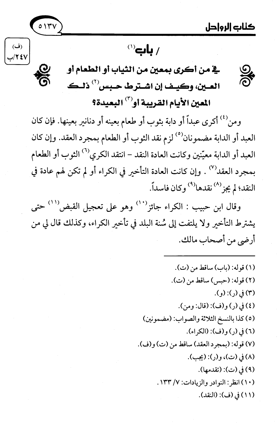 (¬10) انظر: النوادر والزيادات: 7/ 133.