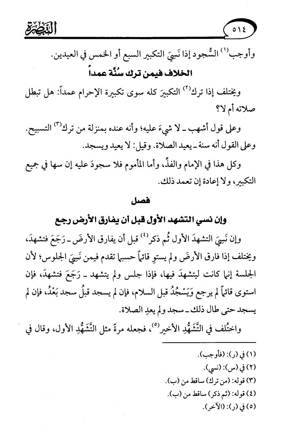 فصل وإن نسي التشهد الأول قبل أن يفارق الأرض رجع