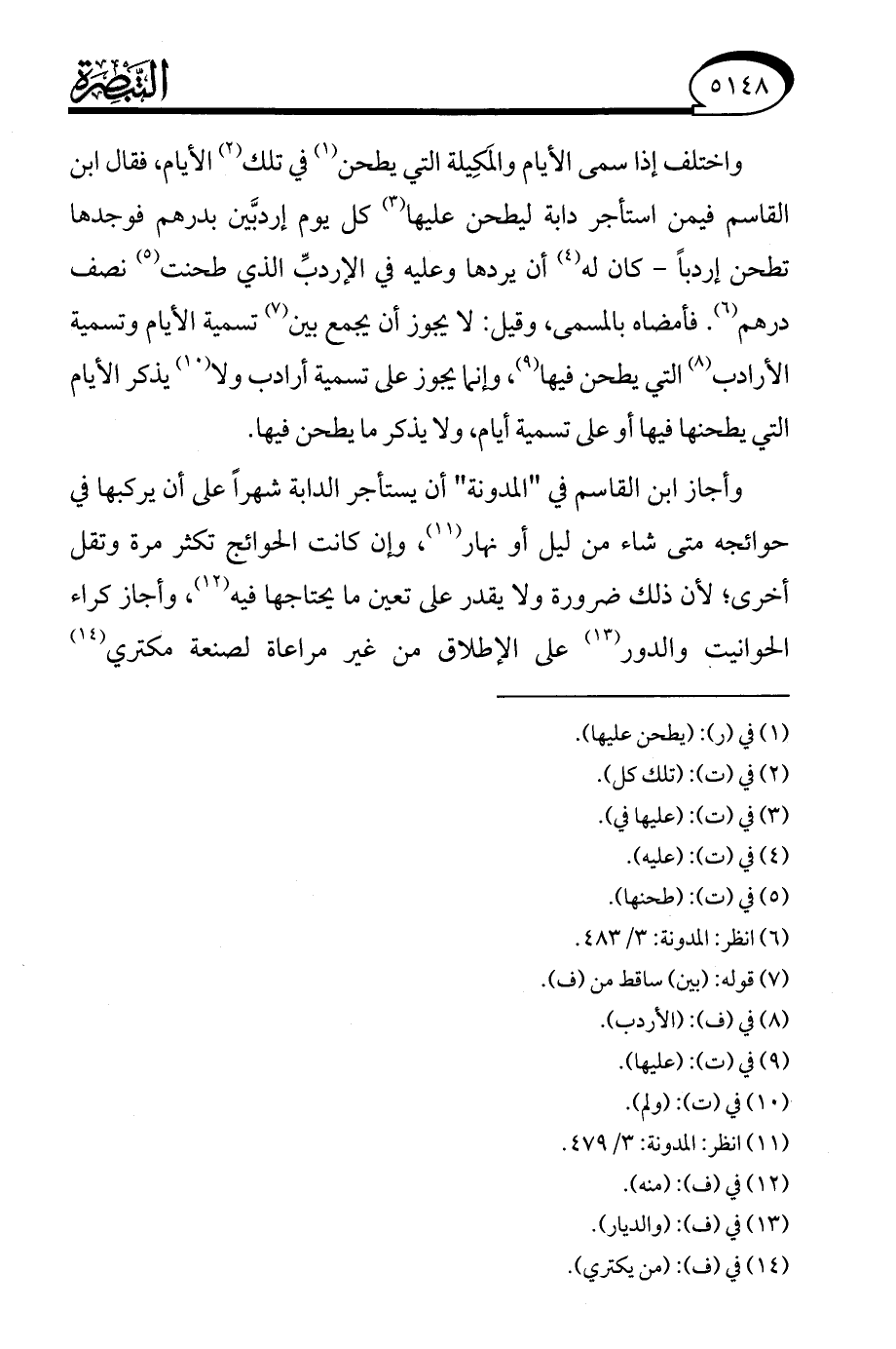 (¬11) انظر: المدونة: 3/ 479.