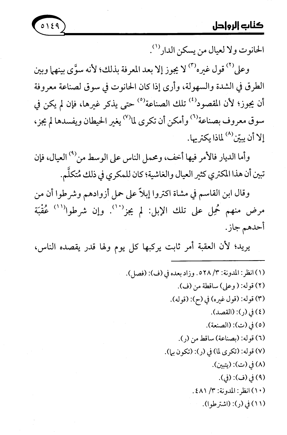 وقال ابن القاسم في مشاة اكتروا إبلًا على حمل أزوادهم وشرطوا أن من مرض منهم حُمِل على تلك الإبل: لم يجز (¬10). وإن شرطوا (¬11) عُقْبَة أحدهم جاز.