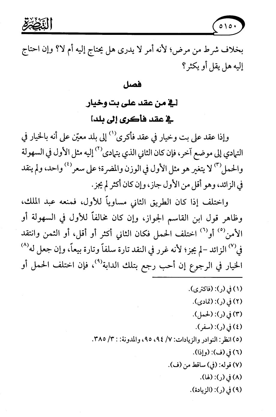 (¬5) انظر: النوادر والزيادات: 7/ 94، 95، والمدونة: 3/ 385.