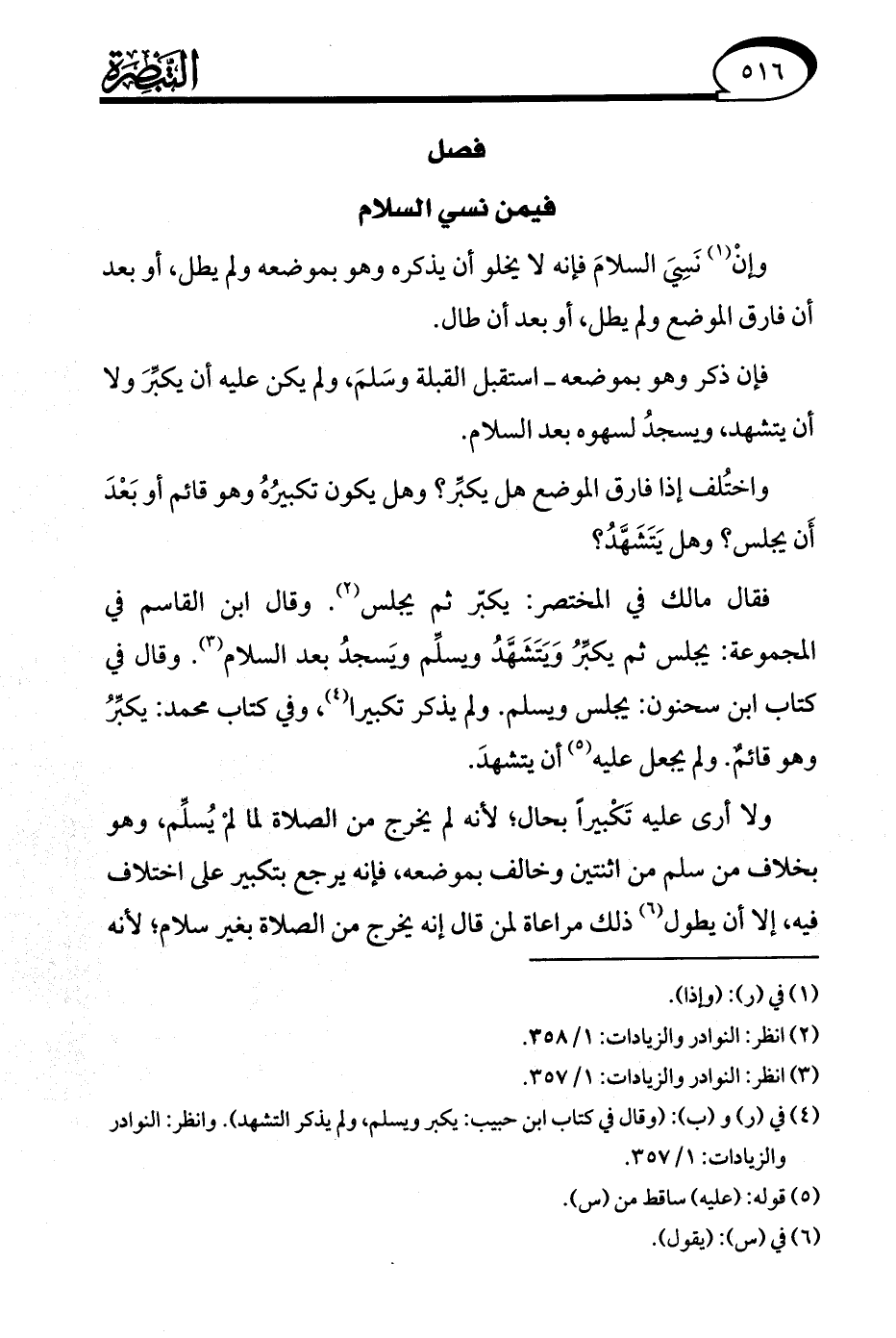 (¬3) انظر: النوادر والزيادات: 1/ 357.