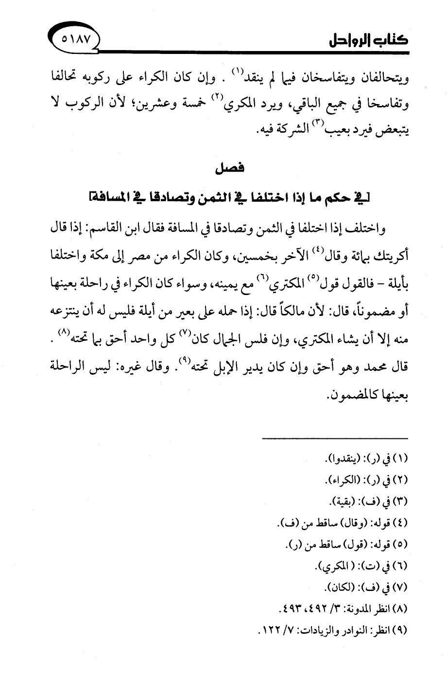 (¬9) انظر: النوادر والزيادات: 7/ 122.