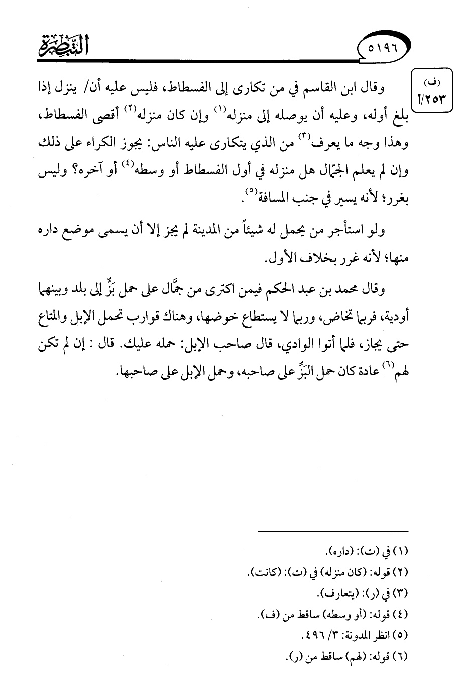 (¬5) انظر المدونة: 3/ 496.