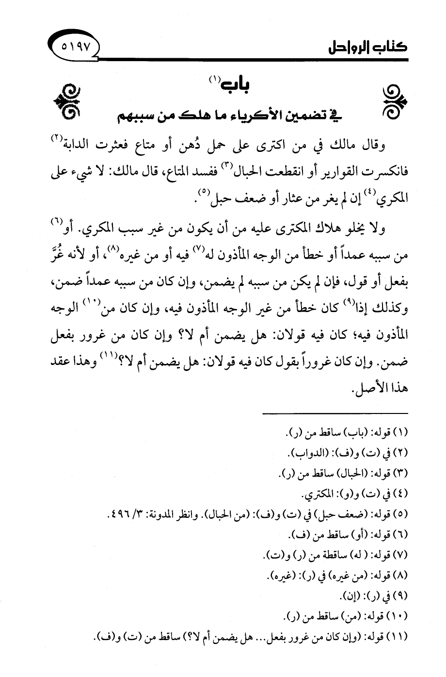 باب (¬1) في تضمين الأكرياء ما هلك من سببهم