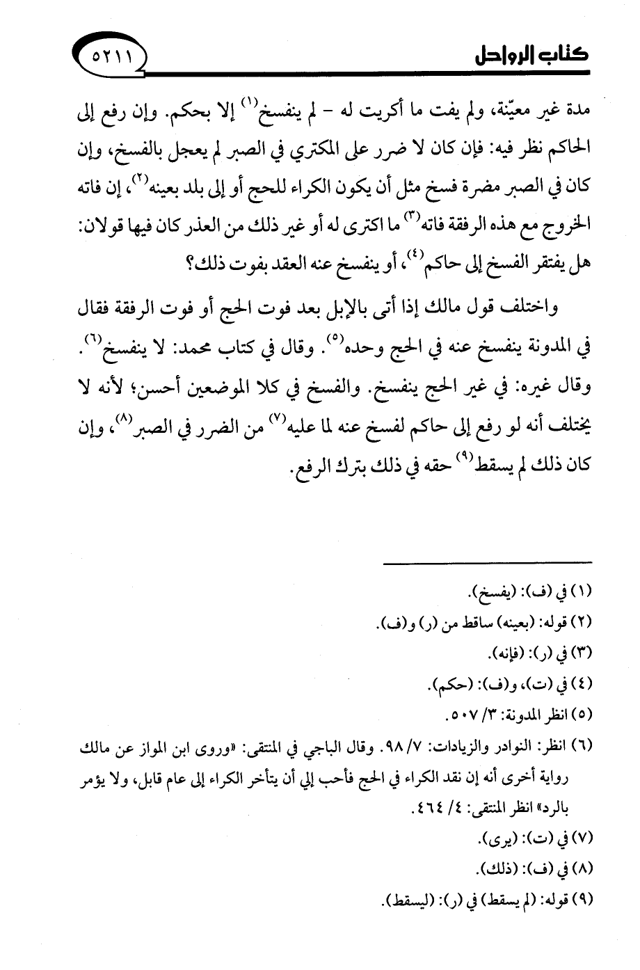(¬6) انظر: النوادر والزيادات: 7/ 98. وقال الباجي في المنتقى: "وروى ابن المواز عن مالك رواية أخرى أنَّه إن نقد الكراء في الحج فأحب إلى أن يتأخر الكراء إلى عام قابل، ولا يؤمر بالرد" انظر المنتقى: 4/ 464.