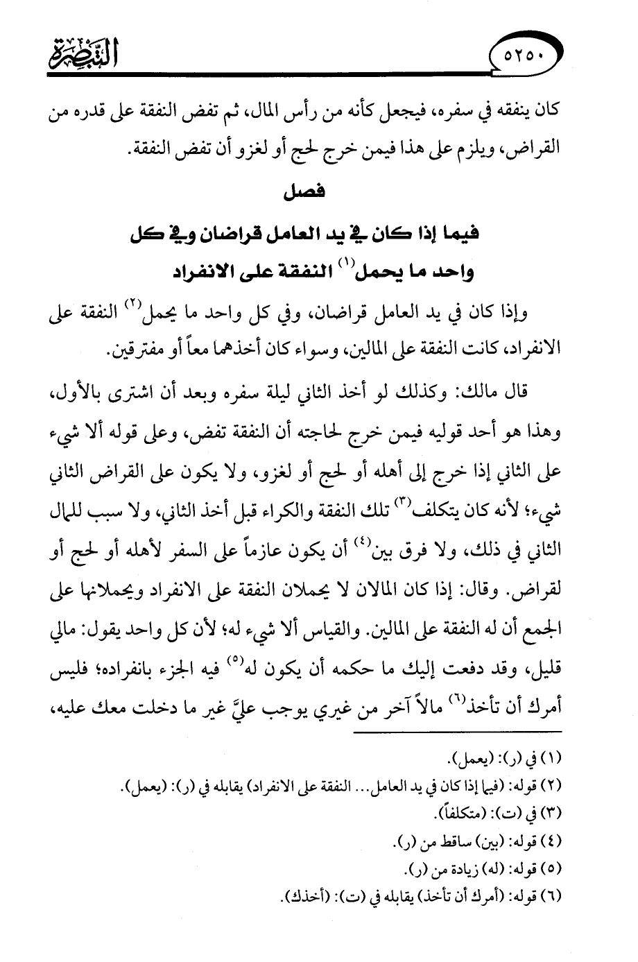 قال مالك: وكذلك لو أخذ الثاني ليلة سفره وبعد أن اشترى بالأول، وهذا هو أحد قوليه فيمن خرج لحاجته أن النفقة تفض، وعلى قوله ألا شيء على الثاني إذا خرج إلى أهله أو لحج أو لغزو، ولا يكون على القراض الثاني شيء؛ لأنه كان يتكلف (¬3) تلك النفقة والكراء قبل أخذ الثاني، ولا سبب للمال الثاني في ذلك، ولا فرق بين (¬4) أن يكون عازمًا على السفر لأهله أو لحج أو لقراض. وقال: إذا كان المالان لا يحملان النفقة على الانفراد ويحملانها على الجمع أن له النفقة على المالين. والقياس ألا شيء له؛ لأن كل واحد يقول: مالي قليل، وقد دفعت إليك ما حكمه أن يكون له (¬5) فيه الجزء بانفراده؛ فليس أمرك أن تأخذ (¬6) مالًا آخر من غيري يوجب عليَّ غير ما دخلت معك عليه،