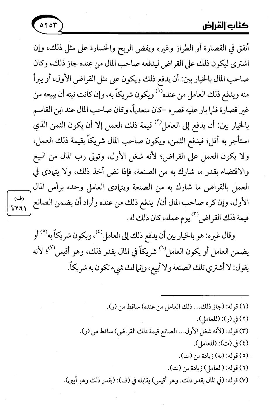 وقال غيره: هو بالخيار بين أن يدفع ذلك إلى العامل (¬4)، ويكون شريكًا به (¬5) أو يضمن العامل أو يكون العامل (¬6) شريكًا في المال بقدر ذلك، وهو أقيس (¬7)؛ لأنه يقول: لا أشتري تلك الصنعة ولا أبيع، وإنما لك شيء تكون به شريكًا.