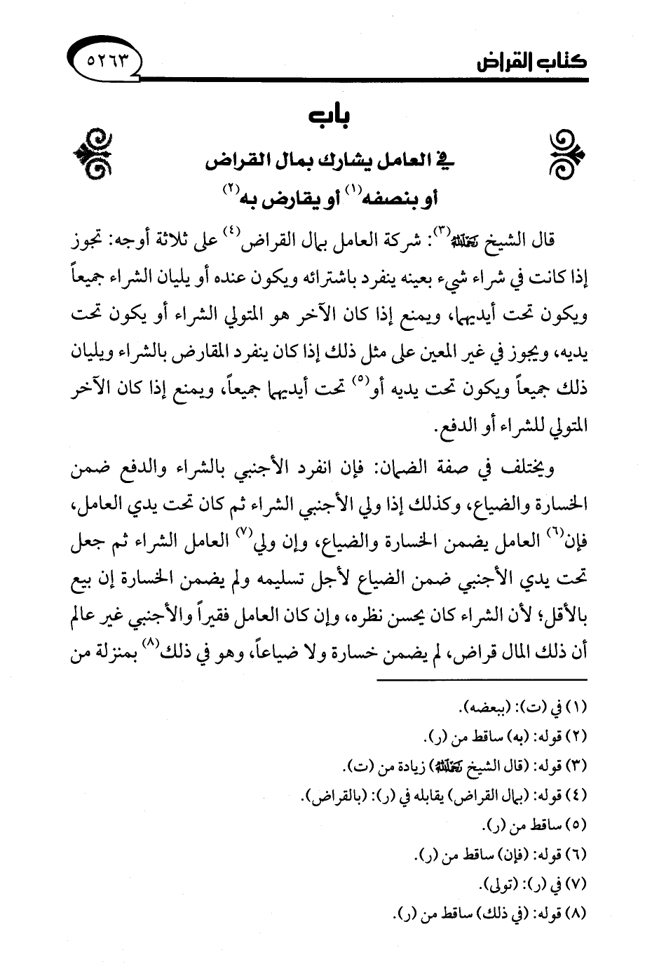 (¬4) قوله: (بمال القراض) يقابله في (ر): (بالقراض).