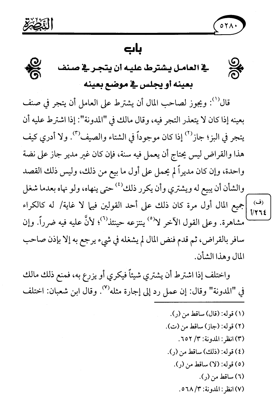 (¬7) انظر: المدونة: 3/ 568.