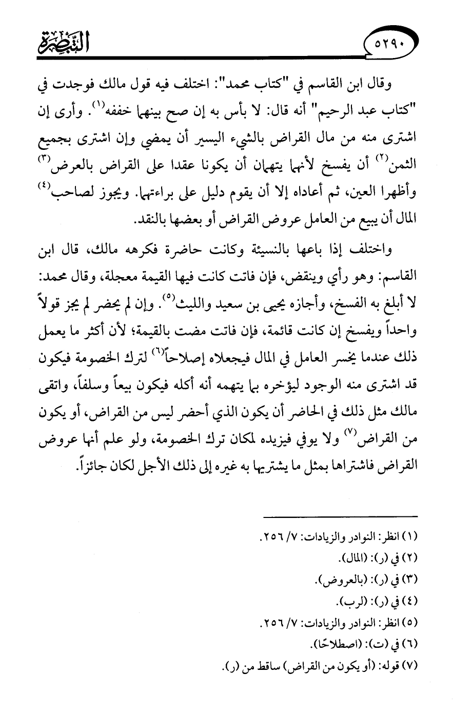 (¬5) انظر: النوادر والزيادات: 7/ 256.