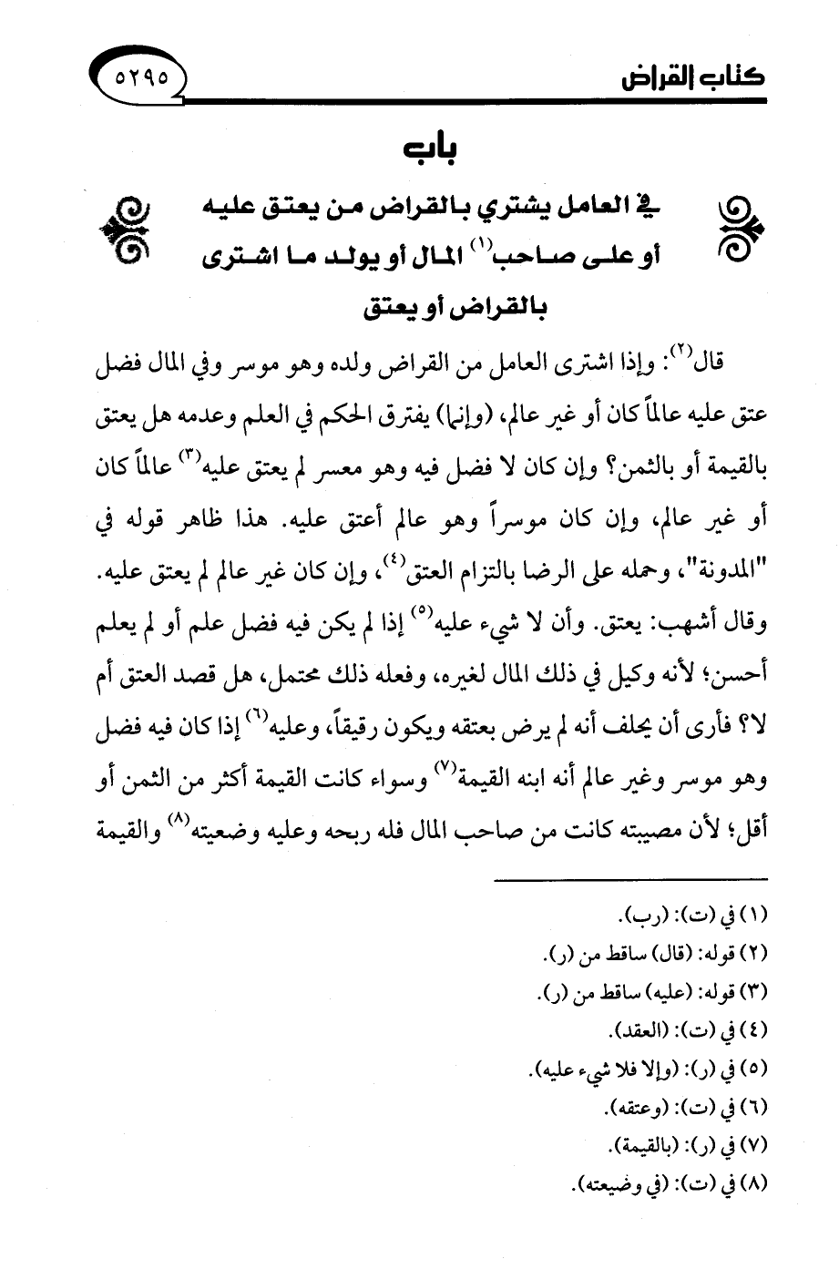 باب في العامل يشتري بالقراض من يعتق عليه أو على صاحب (¬1) المال أو يولد ما اشترى بالقراض أو يعتق