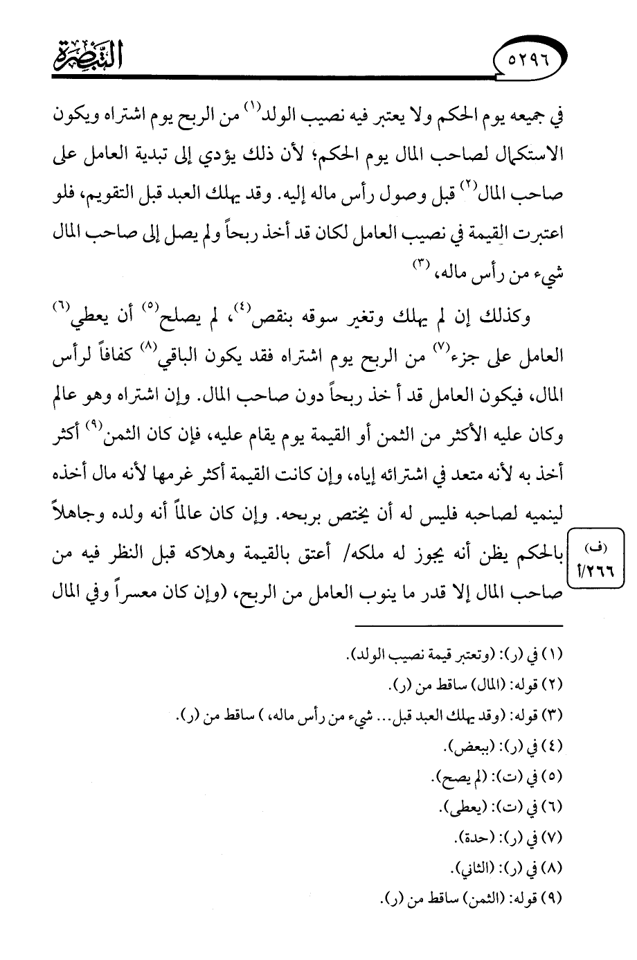 اعتبرت القيمة في نصيب العامل لكان قد أخذ ربحًا ولم يصل إلى صاحب المال شيء من رأس ماله، (¬3)