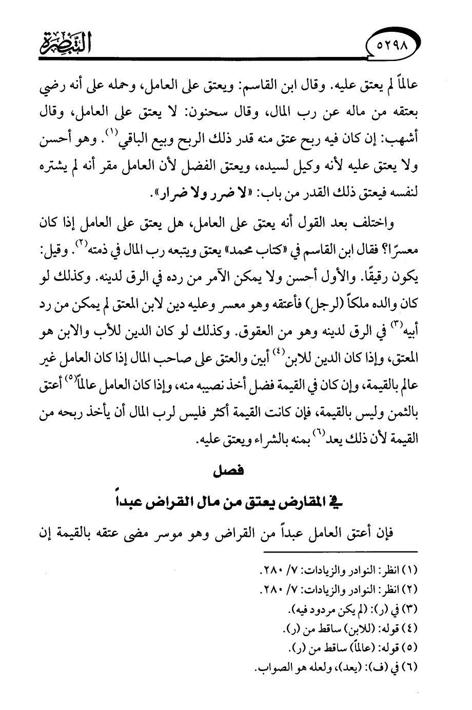 (¬2) انظر: النوادر والزيادات: 7/ 280.