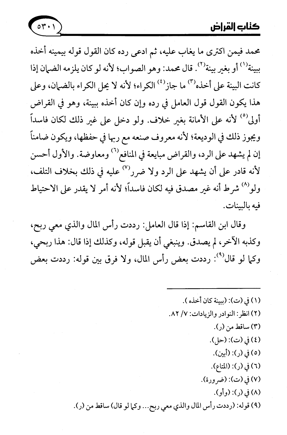 (¬2) انظر: النوادر والزيادات: 7/ 82.