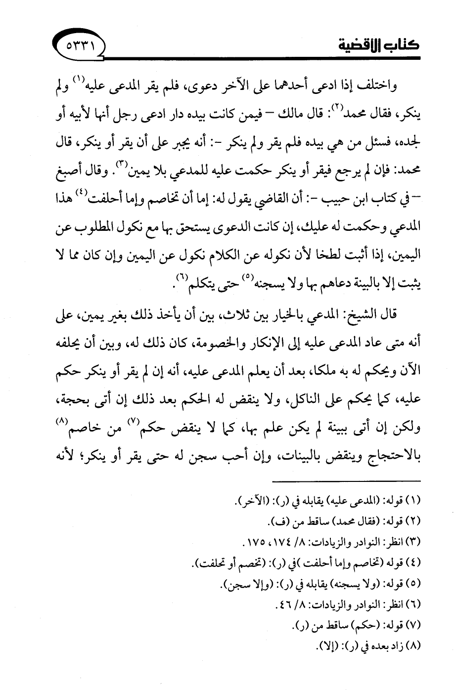 (¬6) انظر: النوادر والزيادات: 8/ 46.