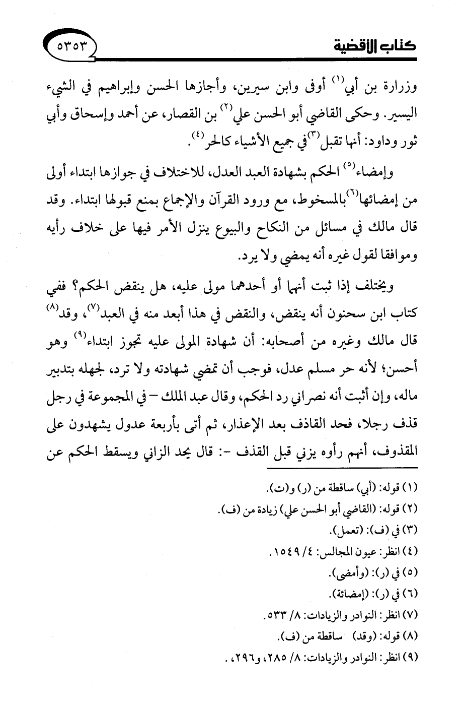 (¬9) انظر: النوادر والزيادات: 8/ 285، و 296.