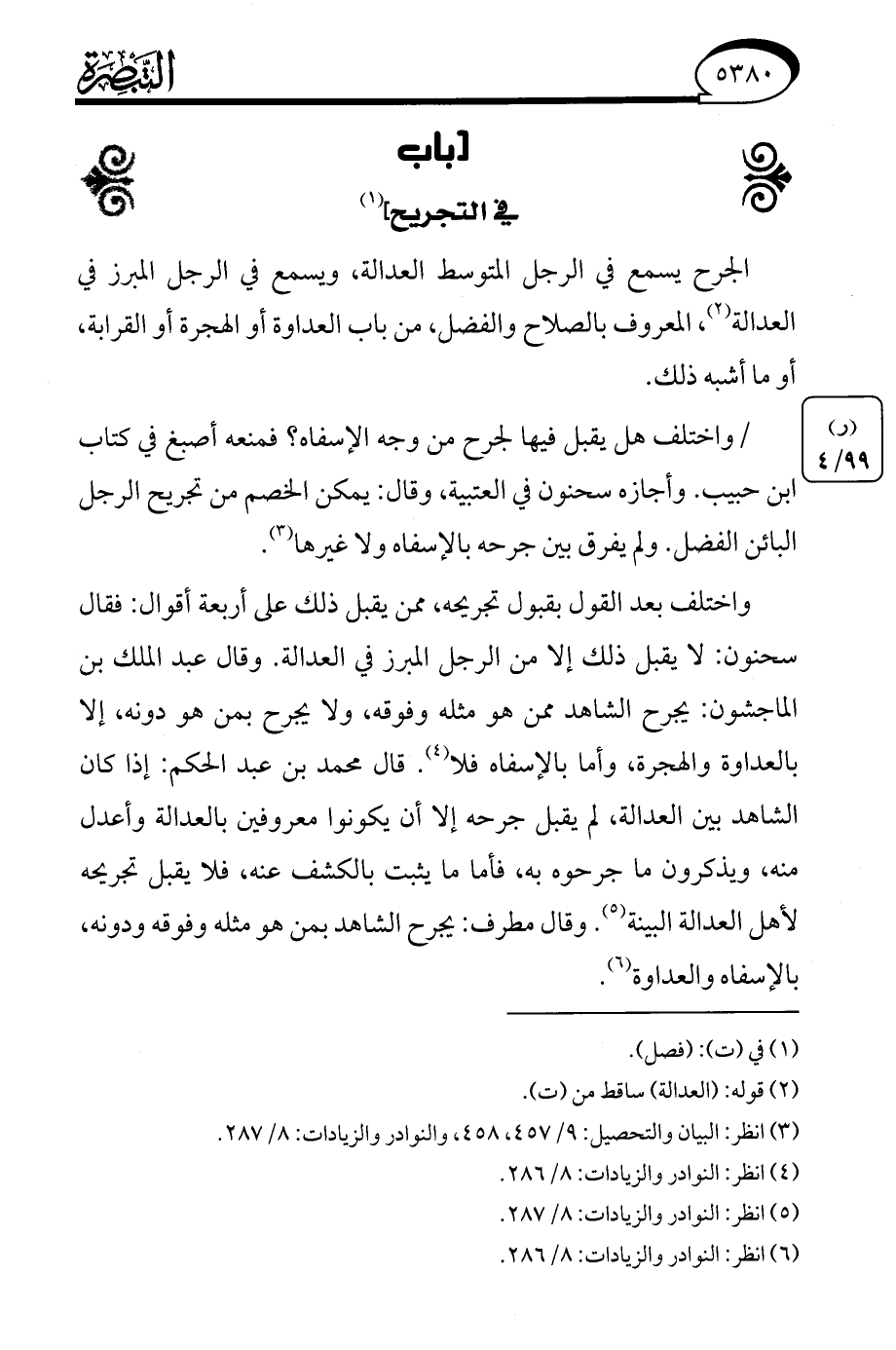 (¬3) انظر: البيان والتحصيل: 9/ 457، 458، والنوادر والزيادات: 8/ 287.