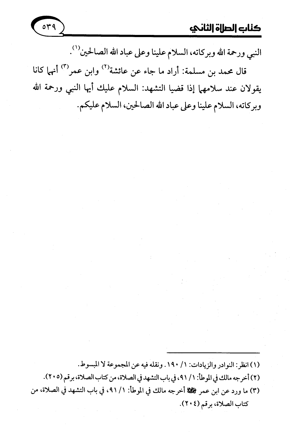 (¬2) أخرجه مالك في الموطأ: 1/ 91، في باب التشهد في الصلاة من كتاب الصلاة، برقم (205).