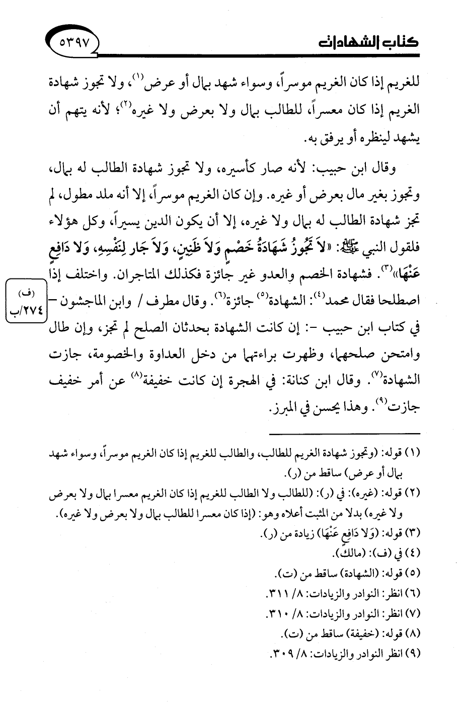 (¬7) انظر: النوادر والزيادات: 8/ 310.