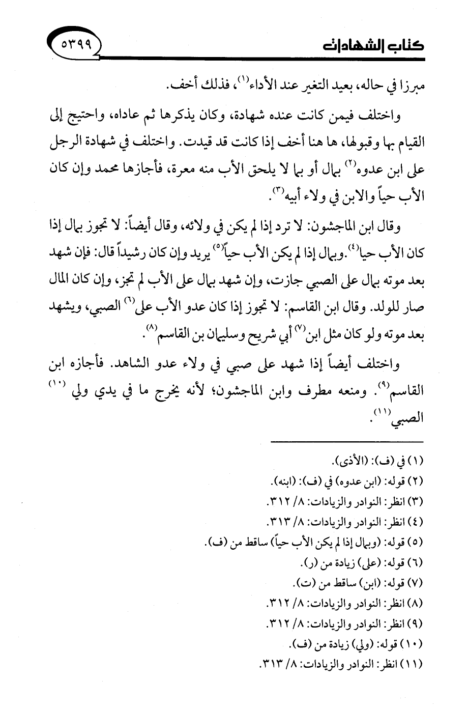 (¬9) انظر: النوادر والزيادات: 8/ 312.