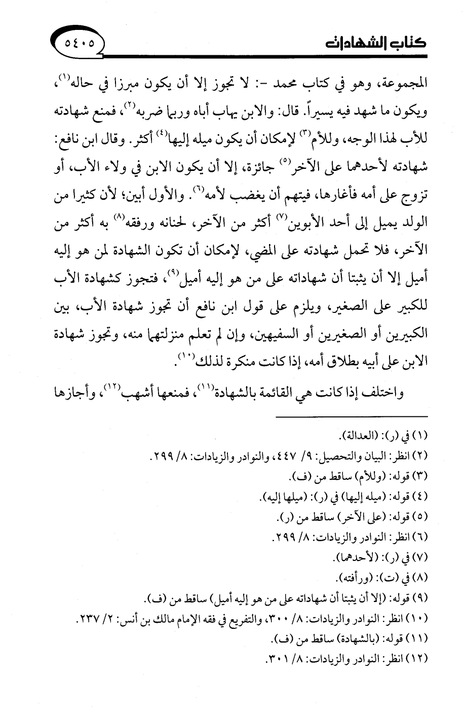 (¬2) انظر: البيان والتحصيل: 9/ 447، والنوادر والزيادات: 8/ 299.