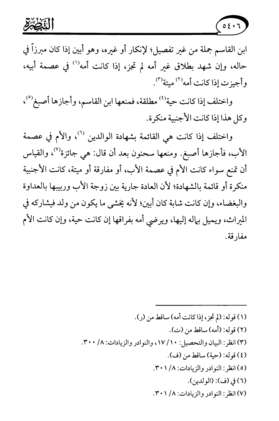 (¬3) انظر: البيان والتحصيل: 10/ 17، والنوادر والزيادات: 8/ 300.