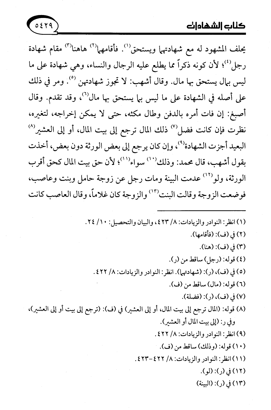 (¬9) انظر: النوادر والزيادات: 8/ 422.