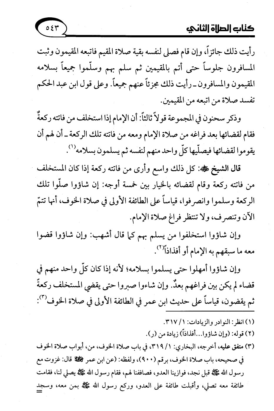 وإن شاؤوا أمهلوا حتى يسلموا بسلامه؛ لأنه إذا كان كلّ واحد منهم في قضاء لم يكن بين فراغهم بعدٌ. وإن شاءوا صبروا حتى يقضي المستخلف ركعةً ثم يقضون، قياسًا على حديث ابن عمر في الطائفة الأولى في صلاة الخوف (¬3):