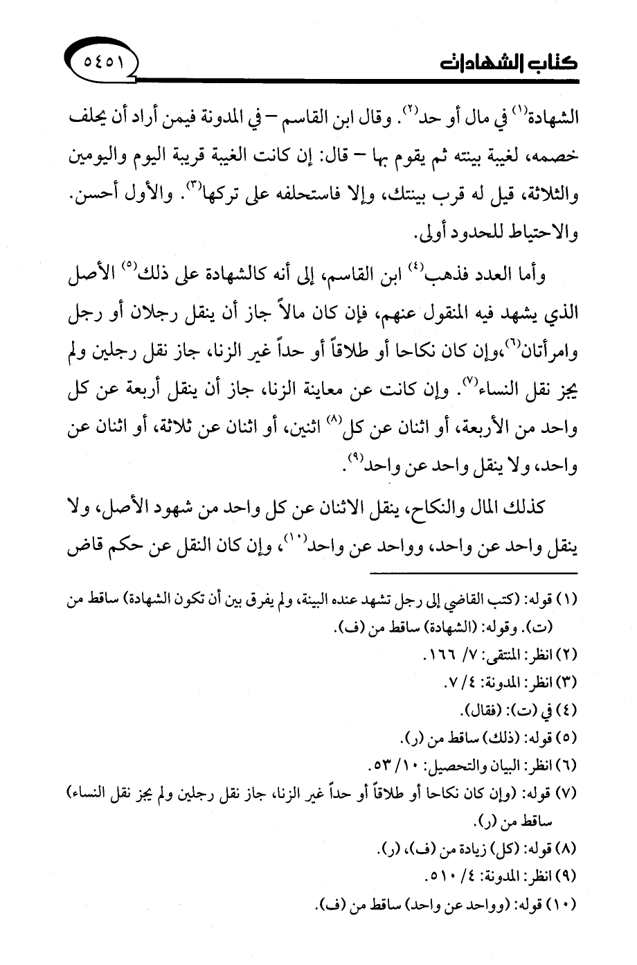 (¬9) انظر: المدونة: 4/ 510.