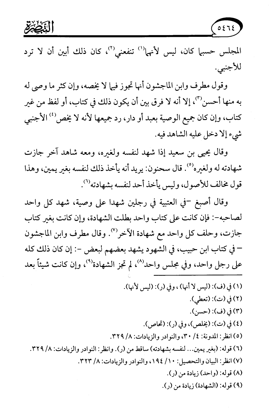 (¬7) انظر: البيان والتحصيل: 10/ 194، والنوادر والزيادات: 8/ 323.