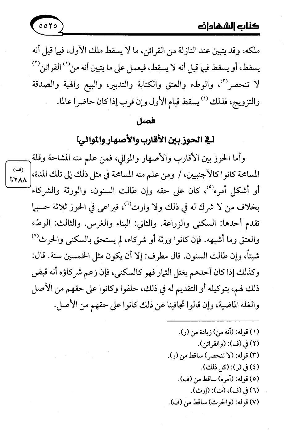وأما الحوز بين الأقارب والأصهار والموالي، فمن علم منه المشاحة وقلة المسامحة كانوا كالأجنبيين، ومن علم منه المسامحة في مثل ذلك إلى تلك المدة، أو أشكل أمره (¬5)، كان على حقه وإن طالت السنون، والورثة والشركاء بخلاف من لا شرك له في ذلك ولا وارث (¬6)، فيراعى في الحوز ثلاثة حسبما تقدم أحدها: السكنى والزراعة. والثاني: البناء والغرس. والثالث: الوطء والعتق وما أشبهه. فإن كانوا ورثة أو شركاء، لم يستحق بالسكنى والحرث (¬7) شيئًا، وإن طالت السنون. قال مطرف: إلا أن يكون مثل الخمسين سنة. قال: وكذلك إذا كان أحدهم يغتل الثمار فهو كالسكنى، فإن زعم شركاؤه أنه قبض ذلك لهم، بتوكيله أو التقديم له في ذلك، حلفوا وكانوا على حقهم من الأصل والغلة الماضية، وإن قالوا تجافينا عن ذلك كانوا على حقهم من الأصل.