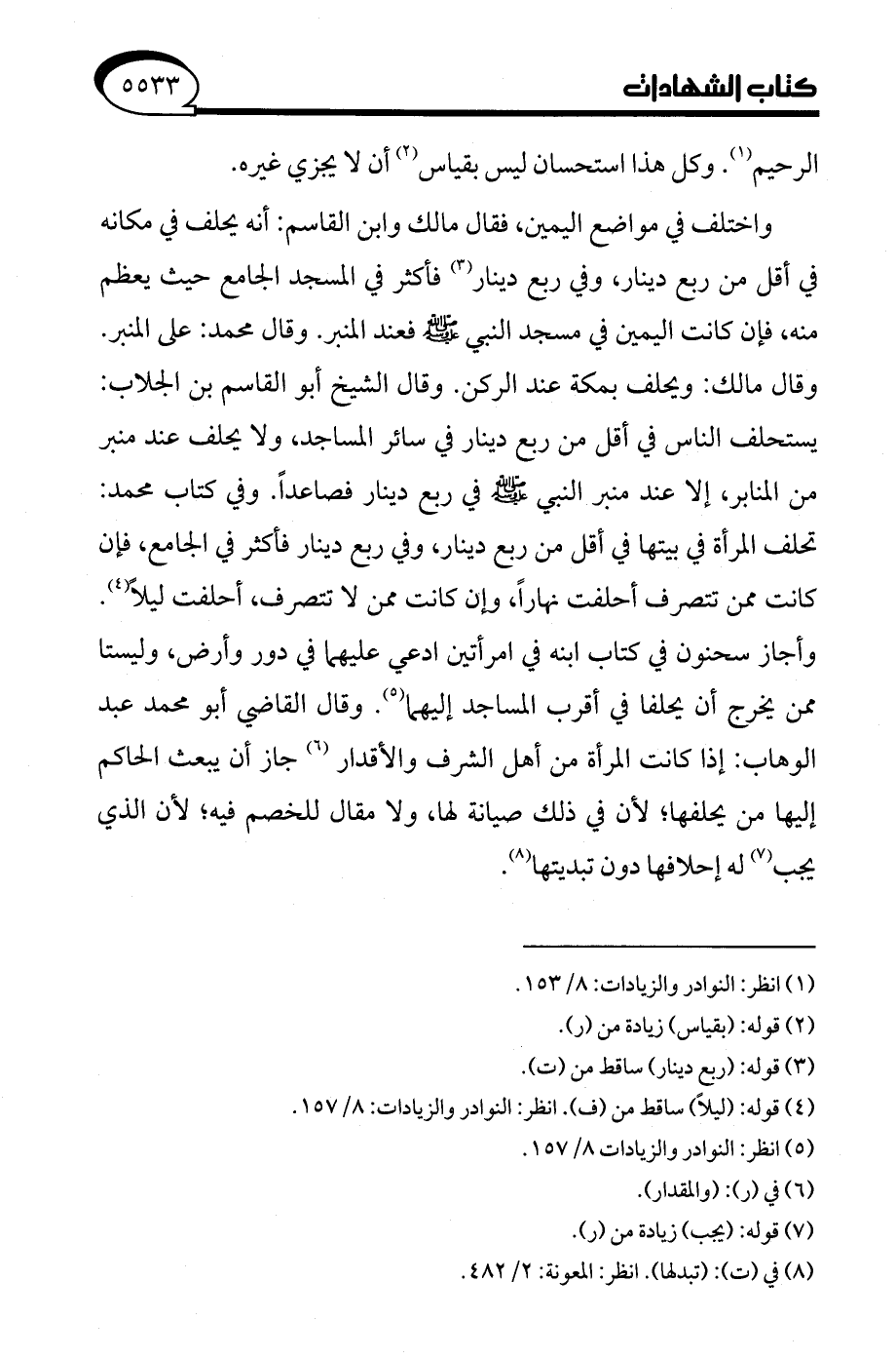 (¬5) انظر: النوادر والزيادات 8/ 157.