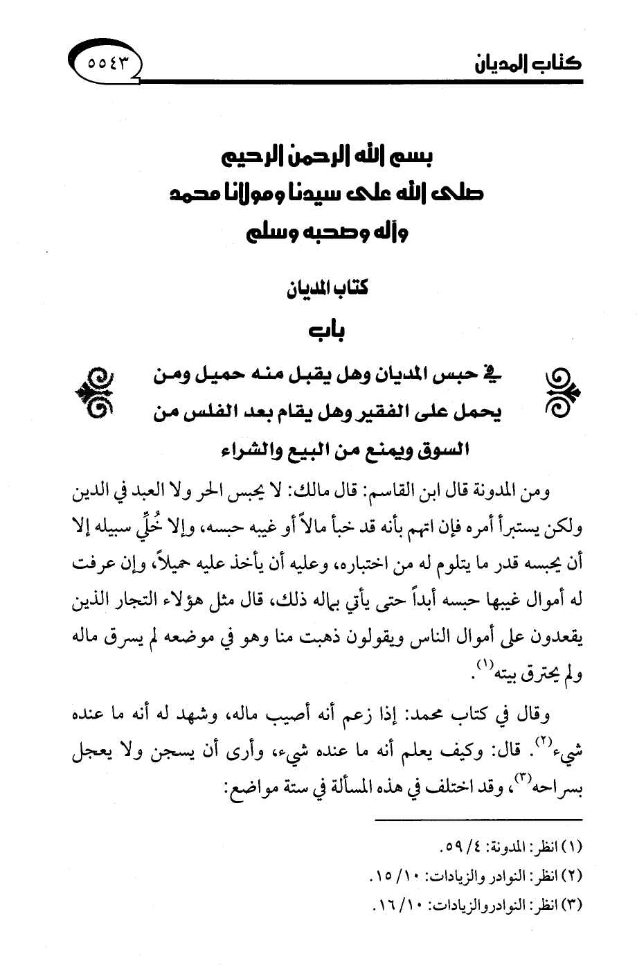 (¬3) انظر: النوادر والزيادات: 10/ 16.
