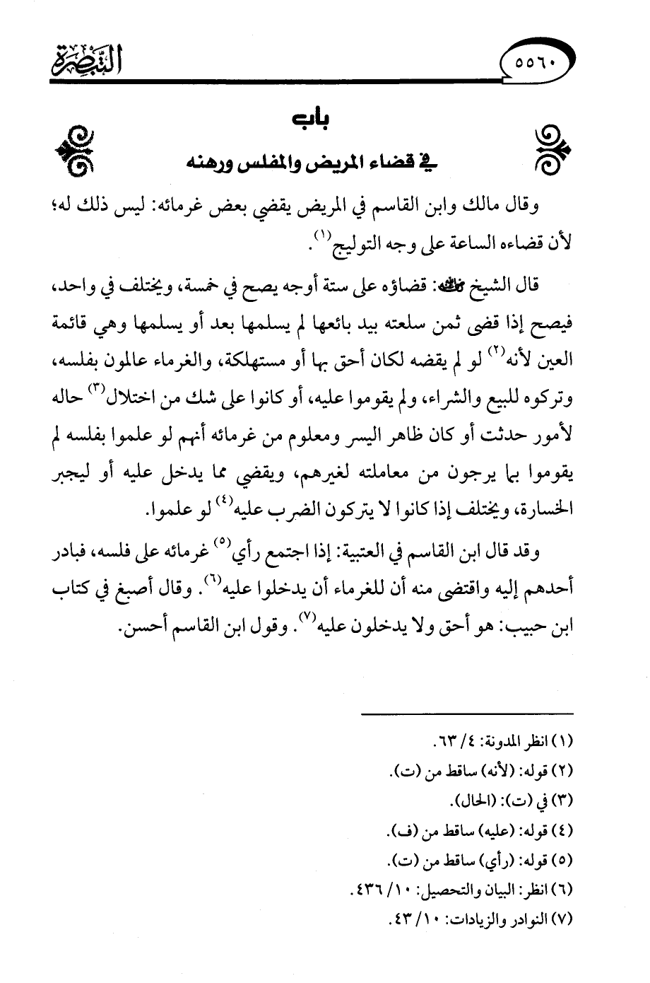 (¬6) انظر: البيان والتحصيل: 10/ 436.