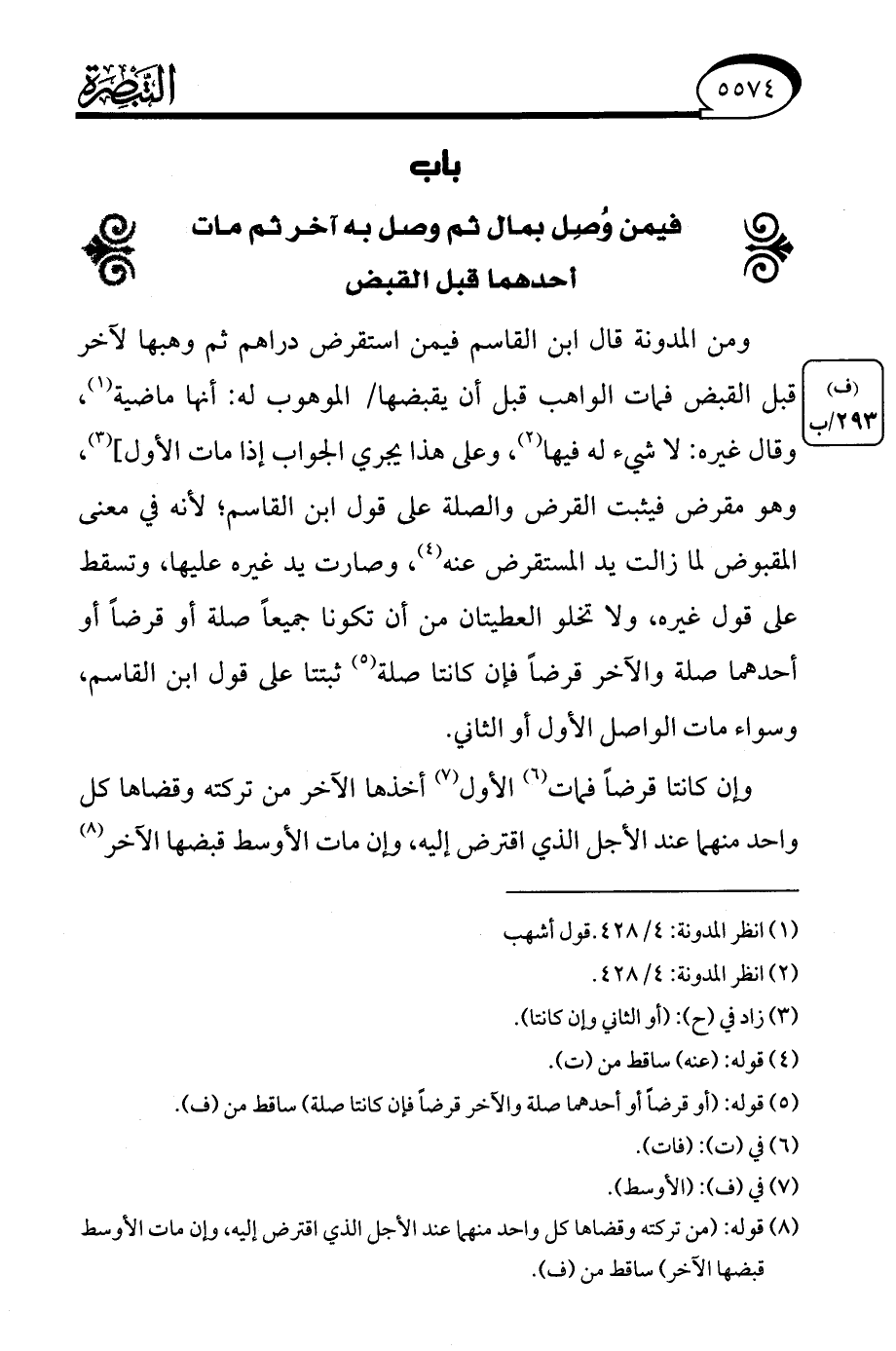 (¬2) انظر المدونة: 4/ 428.