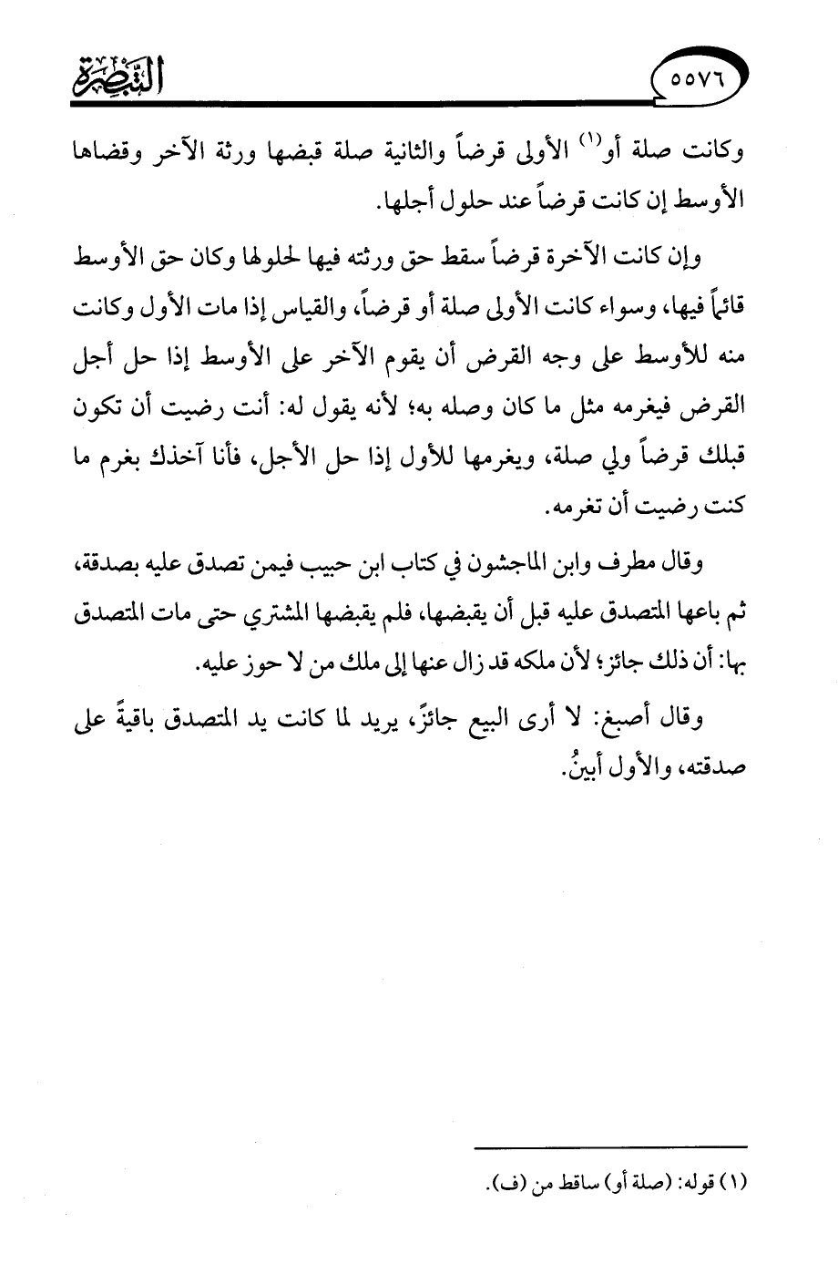 وقال أصبغ: لا أرى البيع جائزً، يريد لما كانت يد المتصدق باقيةً على صدقته، والأول أبينُ.