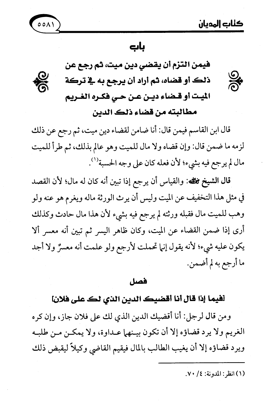 (¬1) انظر: المدونة: 4/ 70.
